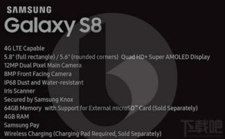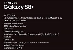 在系统功能方面,S8也带来了不少惊喜。据手册爆料,S8将搭载全新的Android 8.1操作系统,界面更加简洁美观。此外,S8还加入了多项实用功能,如指纹识别、人脸识别、NFC支付等,让用户体验再升级。